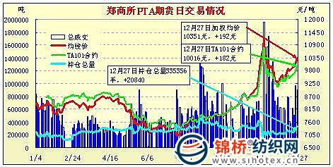 12月27日鄭州商品交易所PTA期貨成交及持倉排名表
