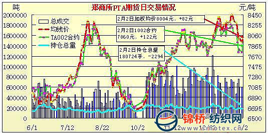 2月2日鄭商所PTA期貨成交及持倉排名表