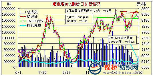 2月26日鄭商所PTA期貨成交及持倉(cāng)排名表