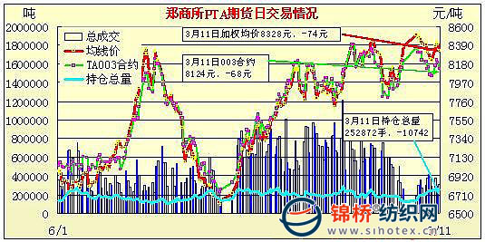 3月11日鄭州商品交易所PTA期貨成交及持倉排名表