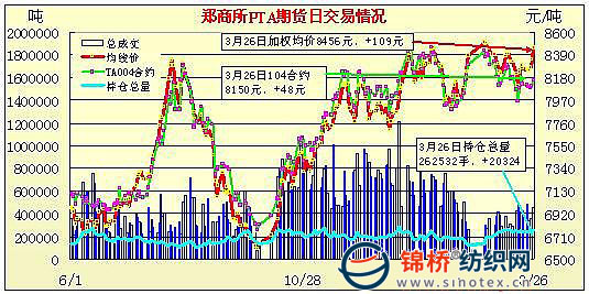 3月26日鄭州商品交易所PTA期貨成交及持倉排名表