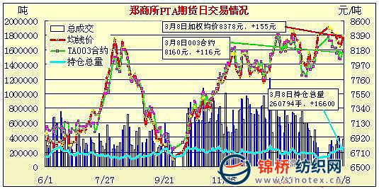 3月8日鄭州商品交易所PTA期貨成交及持倉排名表