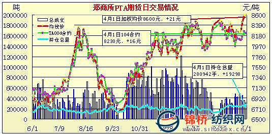 4月1日鄭州商品交易所PTA期貨成交及持倉(cāng)排名表