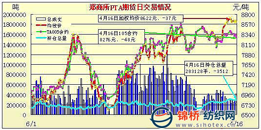 4月16日鄭州商品交易所PTA期貨成交及持倉排名表