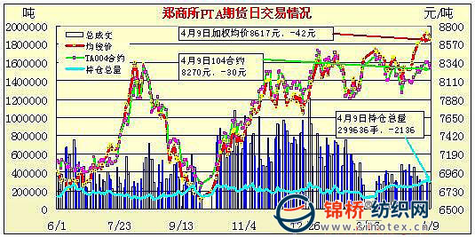 4月9日鄭州商品交易所PTA期貨成交及持倉(cāng)排名表