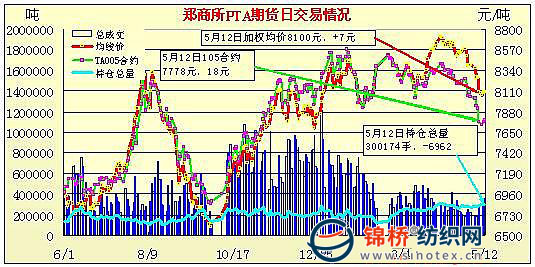 5月12日鄭州商品交易所PTA期貨成交及持倉排名表