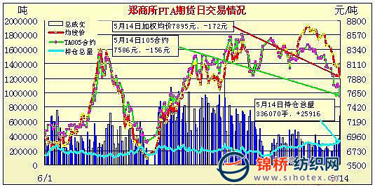 5月14日鄭州商品交易所PTA期貨成交及持倉排名表