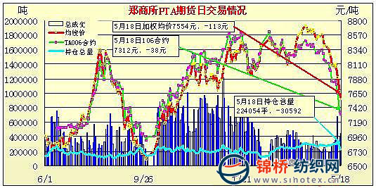 5月18日鄭州商品交易所PTA期貨成交及持倉排名表