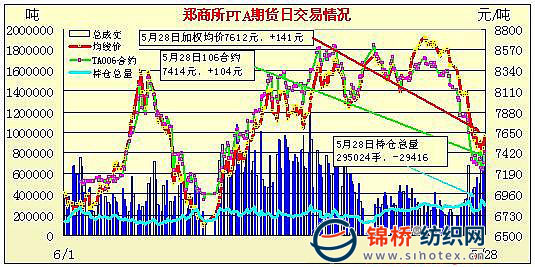 5月28日鄭州商品交易所PTA期貨成交及持倉排名表