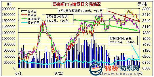 5月6日鄭州商品交易所PTA期貨成交及持倉(cāng)排名表