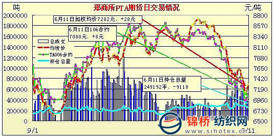6月11日鄭州商品交易所PTA期貨成交及持倉排名表