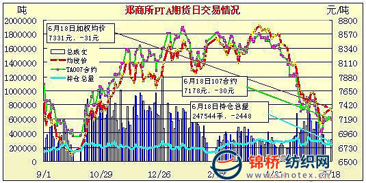 6月18日鄭州商品交易所PTA期貨成交及持倉(cāng)排名表