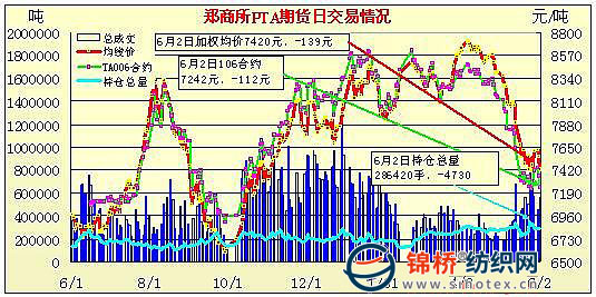 6月2日鄭州商品交易所PTA期貨成交及持倉排名表