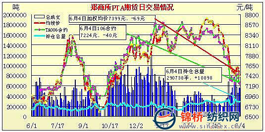 鄭商所PTA期貨交易行情(6-4)