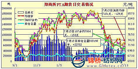 7月13日鄭州商品交易所PTA期貨成交及持倉排名表