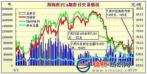 7月29日鄭州商品交易所PTA期貨成交及持倉排名表