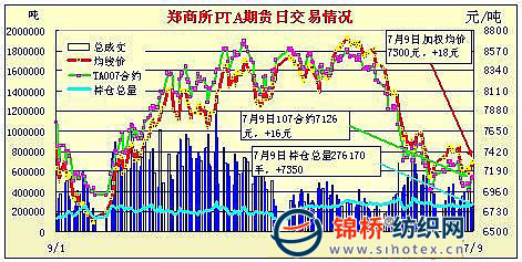 7月9日鄭州商品交易所PTA期貨成交及持倉排名表