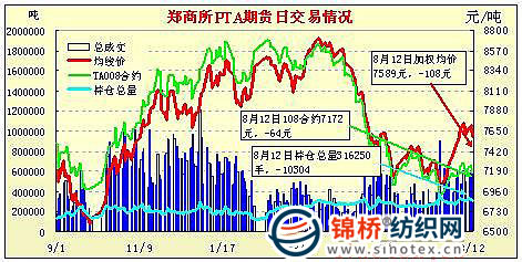 8月12日鄭州商品交易所PTA期貨成交及持倉(cāng)排名表