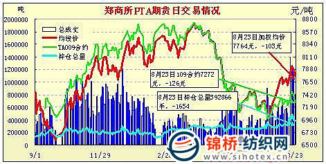 8月23日鄭州商品交易所PTA期貨成交及持倉排名表