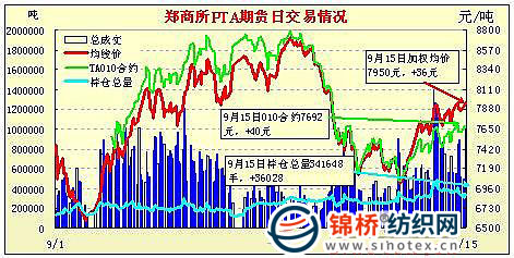 9月15日鄭州商品交易所PTA期貨成交及持倉排名表
