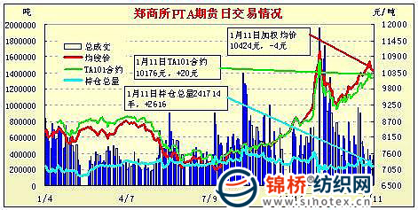 1月11日鄭州商品交易所PTA期貨成交及持倉(cāng)排名表