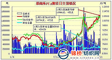1月21日鄭州商品交易所PTA期貨成交及持倉(cāng)排名表