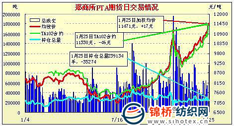 1月25日鄭州商品交易所PTA期貨成交及持倉排名表