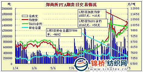 1月5日鄭州商品交易所PTA期貨成交及持倉排名表