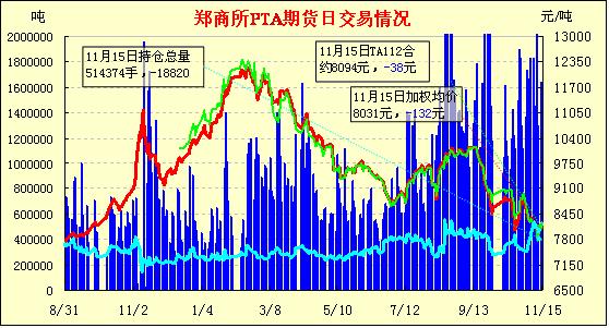 11月15日PTA期貨成交及持倉排名表
