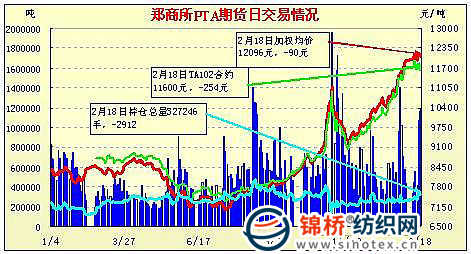 2月18日鄭州商品交易所PTA期貨成交及持倉排名表