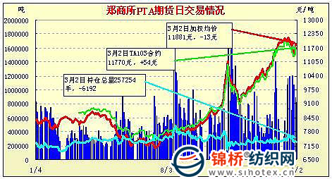 3月2日鄭州商品交易所PTA期貨成交及持倉排名表