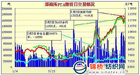 3月3日鄭州商品交易所PTA期貨成交及持倉(cāng)排名表