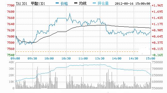 8月16日,PTA沖高回落,持倉(cāng)明顯增加。PTA1301合約開盤報(bào)7600元/噸,收盤報(bào)7616元/噸,較上一交易日上漲64元/噸,漲幅為0.85%。成交量回落至164.71萬(wàn)手左右,持倉(cāng)量增加47546手至65.51萬(wàn)手。因美國(guó)EIA原油庫(kù)存大幅下降提振,NEMEX原油收漲;亞洲PX現(xiàn)貨報(bào)價(jià)小幅上調(diào),現(xiàn)貨動(dòng)態(tài)利潤(rùn)處于-200至-500元/噸。逸盛石化上調(diào)其8月PTA掛牌價(jià)至8300元/噸,PTA成本高企限制回調(diào)空間,延續(xù)震蕩走勢(shì)。PTA現(xiàn)貨市場(chǎng)報(bào)價(jià)回升,市場(chǎng)商談略顯僵持,江浙市場(chǎng)滌絲行情走弱,下游布料銷售回暖緩慢,織造廠家原料采購(gòu)較為謹(jǐn)慎。PTA 1301合約沖高回落,短線繼續(xù)測(cè)試7700關(guān)口壓力,呈現(xiàn)高位震蕩走勢(shì)。操作上,暫以7500-7700區(qū)間交易。