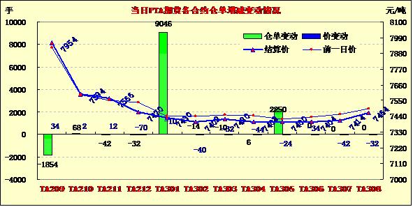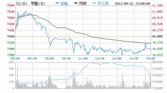 8月22日,PTA震蕩走低,維持弱勢整理。PTA1301合約開盤報7462元/噸,收盤報7398元/噸,較上一交易日下跌42元/噸,跌幅為0.56%。成交量增至194.75萬手左右,持倉量增加9046手至74.8萬手。因冀望歐洲央行將采取行動遏制歐債危機(jī),NEMEX原油出現(xiàn)回升;亞洲PX現(xiàn)貨報價小幅下調(diào),現(xiàn)貨動態(tài)利潤處于-300至-500元/噸。國內(nèi)供應(yīng)商8月PTA掛牌價調(diào)至8200-8300元/噸,部分新增PTA裝置可能陸續(xù)開車增加供應(yīng)壓力,PTA成本高企限制回調(diào)空間,延續(xù)弱勢震蕩走勢。PTA現(xiàn)貨市場報價小幅上調(diào),市場商談略顯僵持,江浙市場滌絲報價出現(xiàn)松動,下游詢盤氣氛一般。