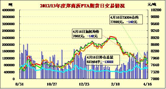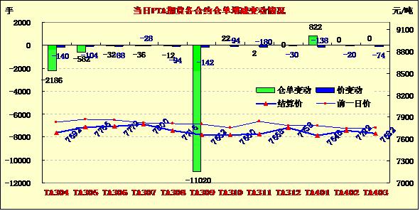PTA期貨繼續(xù)低開減倉續(xù)跌(4-16)