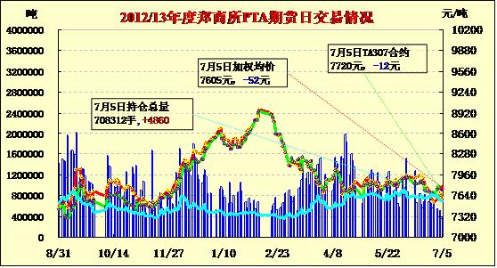 PTA期貨低開低走全線續(xù)跌(7-5)