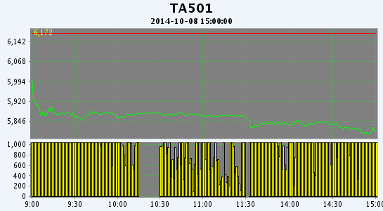 PTA期貨低開低走增倉大跌(10-08)