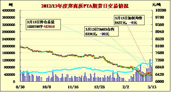 PTA期貨沖高回落增倉續(xù)跌(03-13)