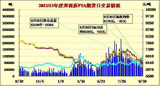 PTA期貨沖高回落減倉收跌(09-30)