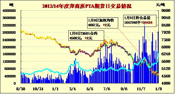 PTA期貨窄幅漲跌持續(xù)增倉(01-08)