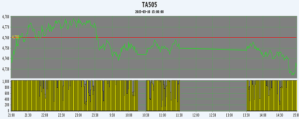 PTA期貨沖高回落減倉續(xù)跌(03-10)