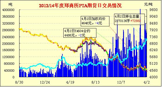 PTA期貨放量增倉反彈橫盤(04-02)