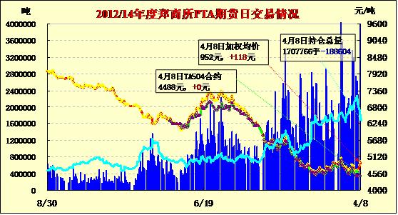PTA期貨放量上揚減倉續(xù)漲(04-08)