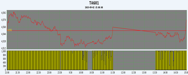 主力TA601合約當日交易走勢