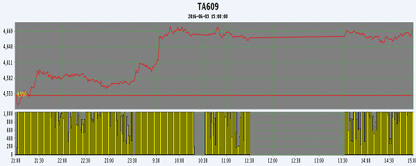 主力TA609合約當日交易走勢