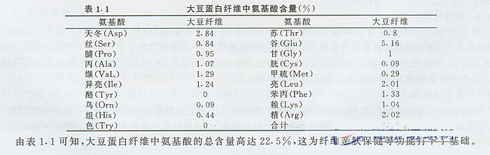 大豆蛋白纖維屬天然再生蛋白質(zhì)纖維,纖維中含有多種人體所必需的氨基酸,其所含的各類氨基酸的量如表1.1所示.