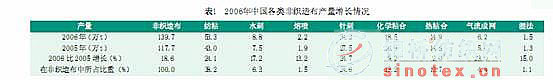 濕法非織造布在我國規(guī)模較小, 2006年略有增長,產(chǎn)量約為1.5萬t,比2005年增長15 %。