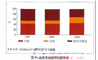 ![]() 從成網(wǎng)方式角度來說, 梳理非織造布在數(shù)量上領(lǐng)先, 但由于低克重高效生產(chǎn)的趨勢, 梳理非織造布向紡粘材料的轉(zhuǎn)變并不能靠開發(fā)新市場得以補(bǔ)償, 梳理技術(shù)正在不斷地丟失市場份額(去年總產(chǎn)量增長6 %,達(dá)到230萬t,中國大陸占據(jù)33 %左右的市場份額,增長了17 %,達(dá)到76.5萬t)。 而水刺技術(shù)受益于西歐和北美家用濕巾市場的帶動,蓬勃發(fā)展, 生產(chǎn)商們大力擴(kuò)展生產(chǎn)能力, 超出了市場需求,為開發(fā)新的應(yīng)用領(lǐng)域預(yù)留了足夠的空間,從而可以使行業(yè)更加積極健康地發(fā)展,由圖4可以看出這一趨勢。