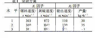 C4型梳棉機(jī)錫林速度、輸出速度與生條棉結(jié)含量的關(guān)系,采用二因子三水平試驗方案(見表1),按L9(34)正交表進(jìn)行試驗,生條定量4.5g/m,并、粗、細(xì)同錠,紡紗品種為C13.9tex。