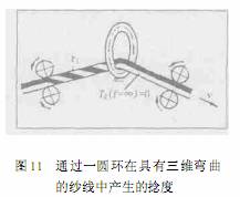 圖9~圖11表示了紗線、粗紗或條子的三維變形的例子,同時(shí)伴有捻度傳遞。